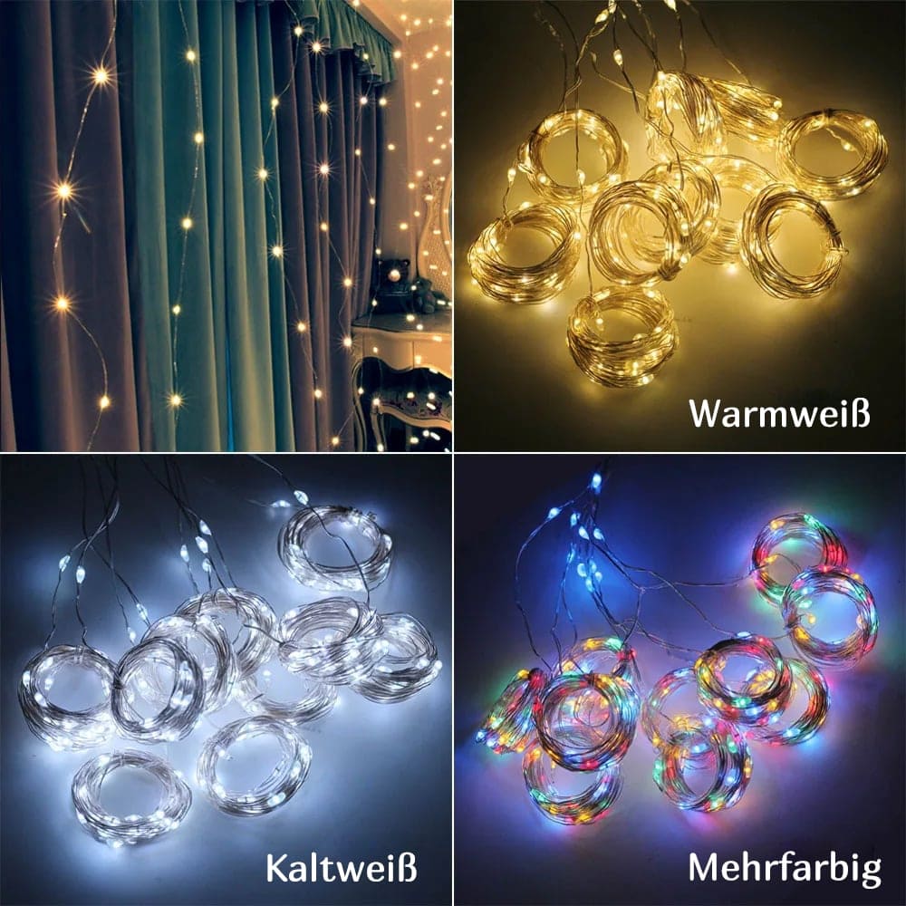Tauche ein in eine märchenhafte Welt. 300 superhelle Lichterketten aus weichem Kupferdraht sorgen für stimmungsvolles Licht und lassen sich beliebig kürzen, ohne den Rest zu beschädigen. So kannst du deiner Kreativität freien Lauf lassen und jede gewünschte Dekoration ganz einfach selbst gestalten.