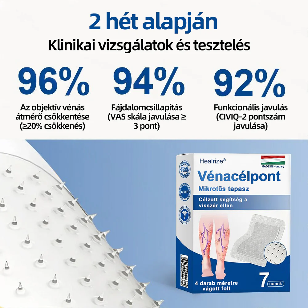 „12 órás műszakokban dolgozó ápolóként a visszérbetegségem rémálom volt. A kórház kompressziós harisnyái kínszenvedésnek tűntek. Szkeptikus voltam a tapaszokkal kapcsolatban, de a 𝐇𝐞𝐚𝐥𝐫𝐢𝐳𝐞®bebizonyította, hogy tévedtem. A mikrotűk gyakorlatilag fájdalommentesek, és 3 hét után a lábaim csodásan néznek ki és érzem magam. A férjem szerint visszanyertem az önbizalmamat!”——Varga Dóra, okleveles ápolónő, 35 éves, Budapest⭐⭐⭐⭐⭐