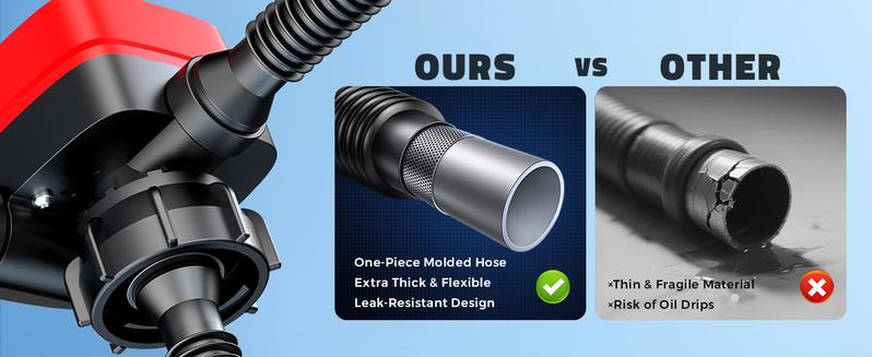 Built with a heavy-duty ABS housing, flexible discharge hose, and integrated leak-proof structure. Unlike ordinary hoses that crack over time, this gas can pump is impact-resistant, corrosion-resistant, and safe for long-term outdoor use.