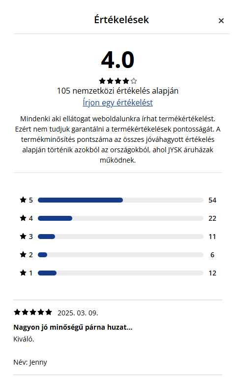 A JYSK büszke széles választékára áruházaiban és online egyaránt. Van azonban pár olyan termékünk, amit csak Click & Collect foglalással vagy közvetlenül áruházainkban lehet megvásárolni. Ezek lehetnek különösen törékeny termékek, beszerzendő, választékból kifutó vagy csak időszakosan kapható termékek.