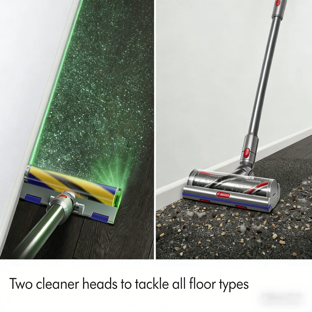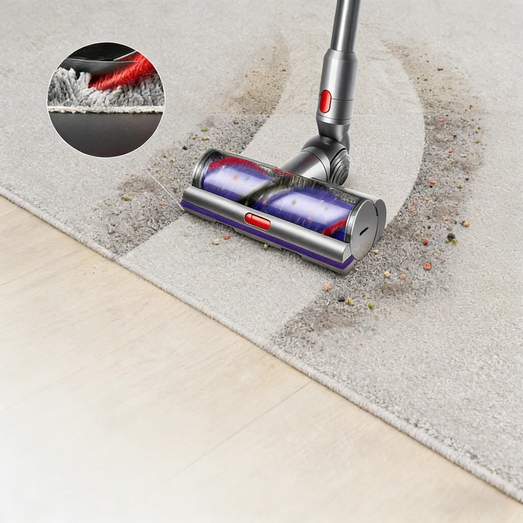 De-tangling Digital Motorbar cleaner head sucks up dust and hair from all floor types and intelligently adapts suction power to match the floor**