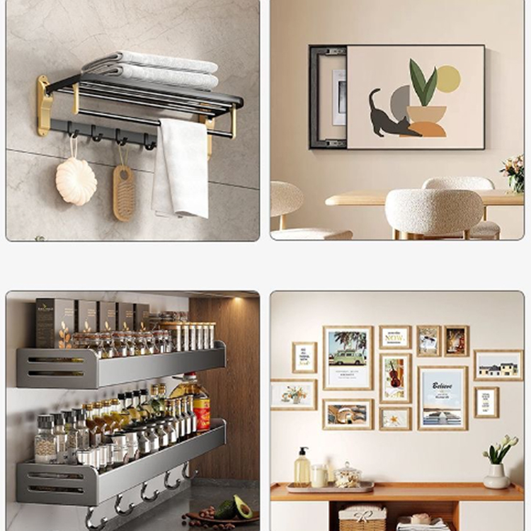 FÚRÁS NÉLKÜLI TELEPÍTÉS - Kényelmes rögzítési megoldást kínál fúrás nélkül, megelőzve a fal károsodását és csökkentve a telepítési időt. Megszünteti a hagyományos szerszámok szükségességét, tiszta, hatékony alternatívát kínálva a tárgyak rögzítéséhez. Megőrzi a felület integritását és megjelenését, így ideális nem invazív rögzítési módszerekhez különböző környezetben.