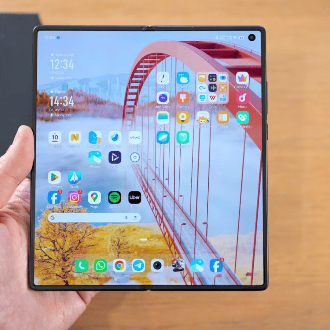 El Vivo X Fold 3 Pro introduce un lector de huellas ultrasónico bajo la pantalla, con un sensor dual para una seguridad avanzada tanto en las pantallas externas como internas.