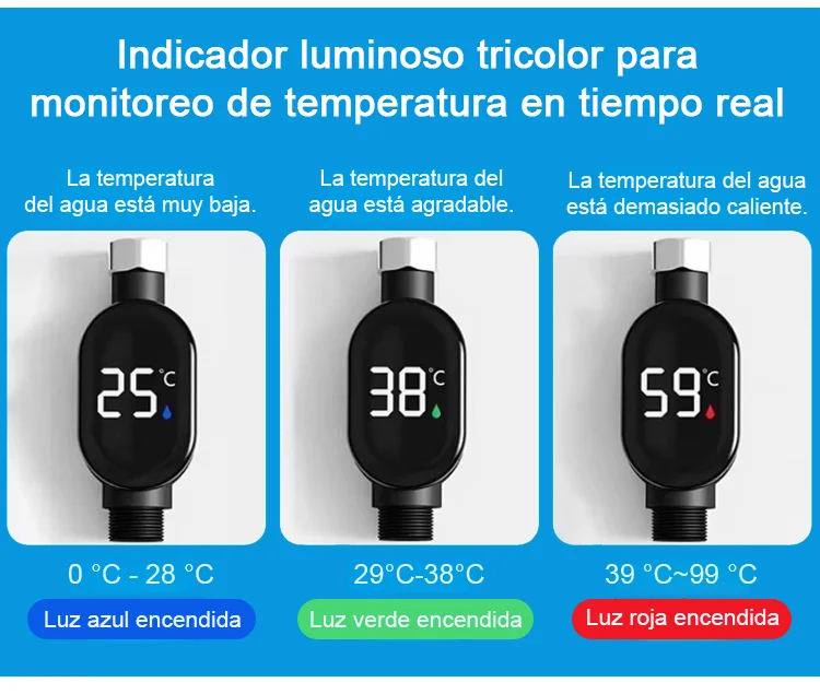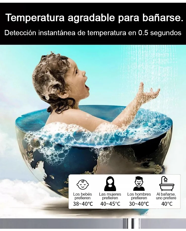 Con una pantalla digital de temperatura del agua, puede controlar con precisión la temperatura del agua y nunca más sufrir quemaduras ni enfriamiento.