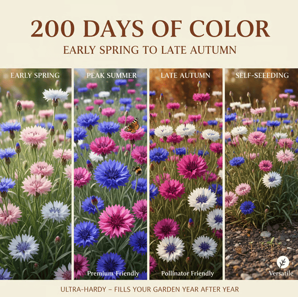 ⭐⭐⭐⭐⭐ "Best value for money." "I bought expensive perennials that died in the frost. These cornflowers survived a crazy spring storm and are still blooming in October. The blue color is unreal." – Mike T., Toronto