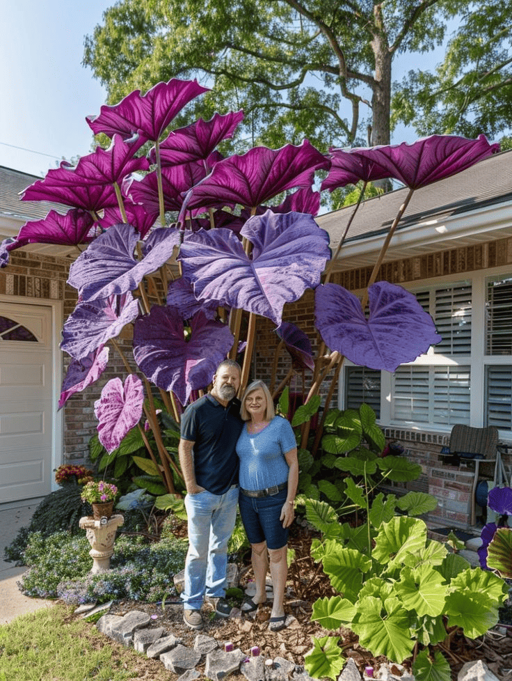 "My Alocasia ‘Regal Shields’ is a MONSTER! It survived a Texas summer – unreal!"