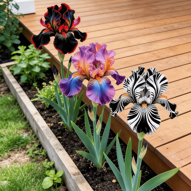 Unlike common flower bulbs, bearded irises grow from rhizomes—thick horizontal stems that produce strong roots, healthy foliage, and stunning blooms season after season.