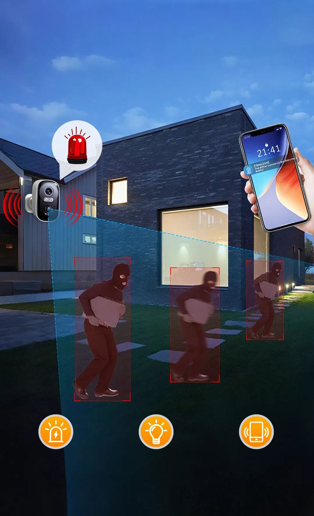 ⚡ Alerta de sirena    💡 Alarma con foco     📱 Notificación en la