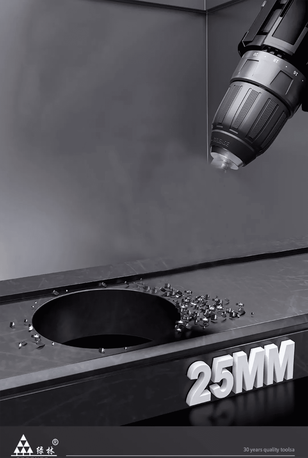 - Insert into the hand drill and tighten