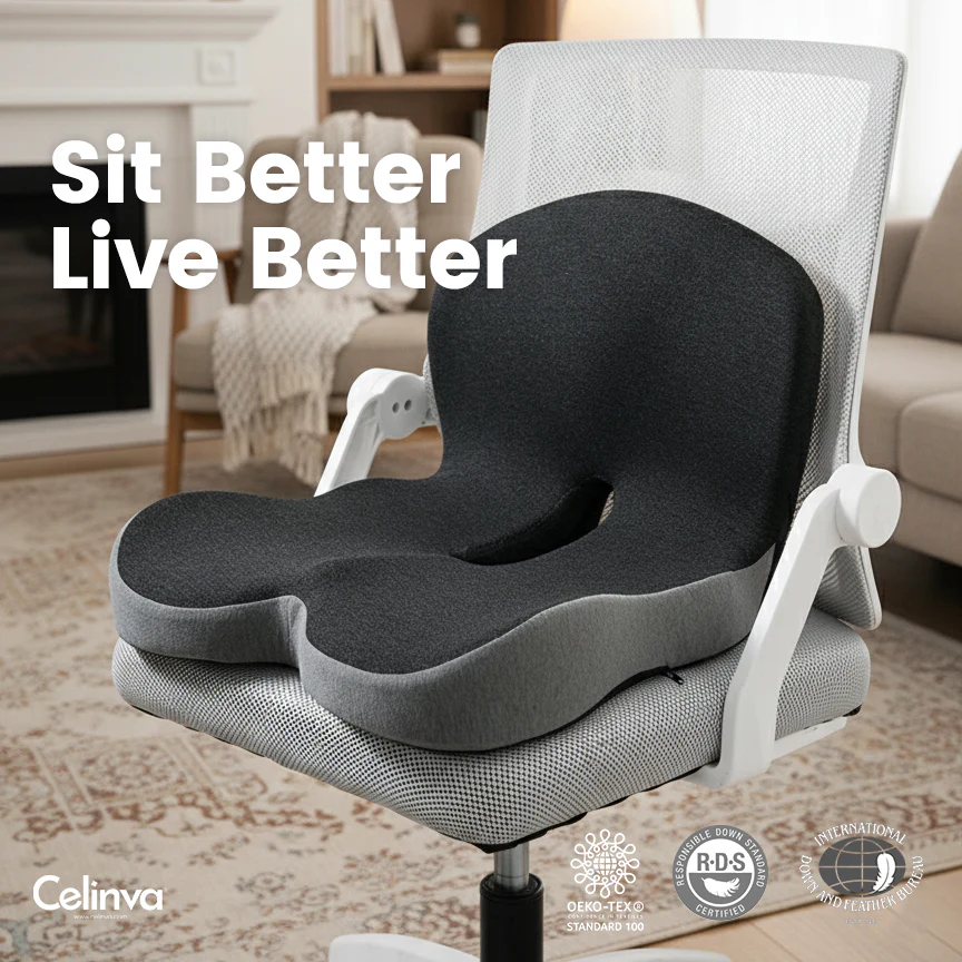 The Celinva™ Orthopedic Cushion is built differently. Its coccyx cut-out relieves direct tailbone pressure, while the contoured design supports your spine to restore healthy posture. High-density memory foam spreads weight evenly across hips and thighs, keeping blood flowing so your legs don’t go numb.