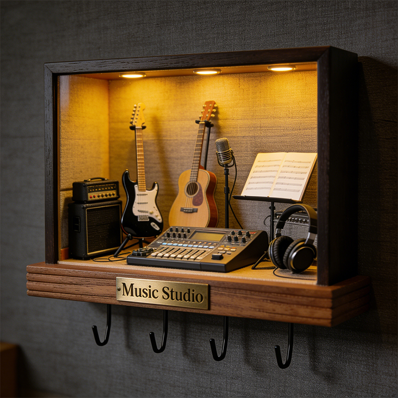 -Exclusive customization highlight: You can engrave exclusive text (such as favorite song names or music-related slogans) on the nameplate of the hook, making it a unique decorative storage item with music studio style.-Product details and meaning: It adopts a miniature music studio design, combining hook storage function with music-themed aesthetics. Suitable for hanging in music rooms, entryways, or living spaces, adding a creative and personalized touch.
