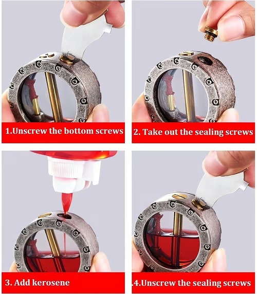 1. Vintage Steampunk Kerosene Lighter with Fully enclosed transparent oil silo, oil dripping does not leak, lasting use