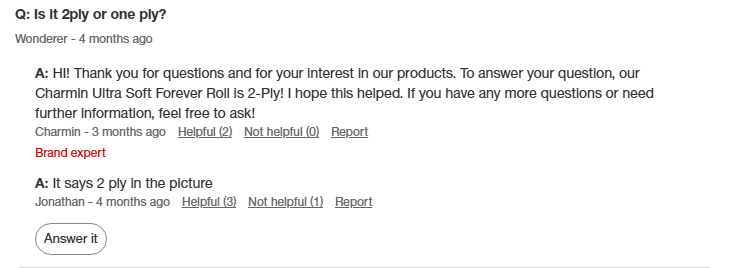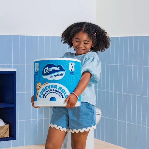 Go up to ONE MONTH before changing your roll (based on average 2-person household)! With Forever Roll, you can go longer between toilet paper roll changes without sacrificing comfort. Charmin has you covered with irresistibly soft, long-lasting toilet paper, and each sheet is 2x more absorbent so you can use less vs. the leading USA 1-ply bath tissue bargain brand.