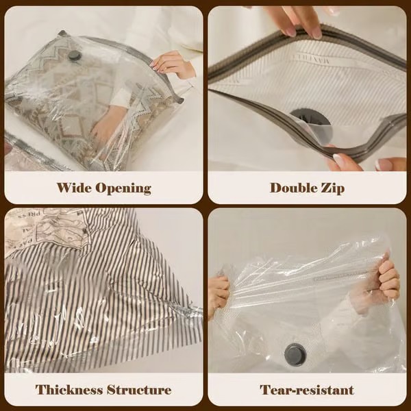 Guardian Of Clothes On The Go: Made from thick PA+PE tear-resistant material, these reusable bags withstand heavy-duty use. Dual-zipper design ensures airtight sealing for waterproof protection. Ideal for organizing clothes, bedding, or bulky items in suitcases, closets, or under-bed storage. Transparent material allows quick item identification.