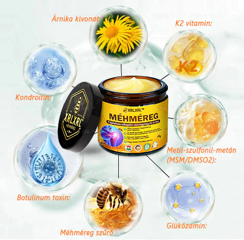 Az XRLXRL® krém természetes méhméregből készül, amely hatékonyan javítja az ízületek rugalmasságát. Az aktív összetevő, a „méhméreg peptid” mélyen behatol az ízületekbe, enyhítve a gyulladás által okozott merevséget és kényelmetlenséget, és segít visszaállítani az ízületek mozgékonyságát. Idővel a méhméreg gyulladáscsökkentő hatásai tovább serkentik a szinoviális folyadék termelődését, jobb kenést biztosítva az ízületeknek, csökkentve a súrlódást, és jelentősen javítva az ízületek rugalmasságát 7 napon belül.