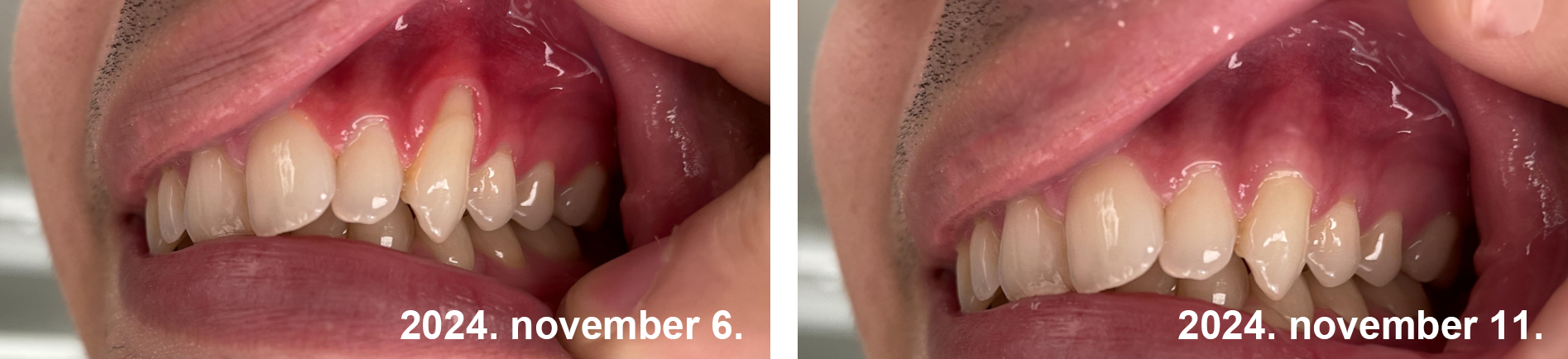 „Évek óta küzdök ínybetegséggel, és ez állandó harc volt. Számtalan kezelést és terméket kipróbáltam, de semmi sem segített igazán. Mivel sok mellékhatásról hallottam, szerettem volna elkerülni az erős gyógyszereket és a fájdalmas beavatkozásokat, ezért úgy döntöttem, hogy inkább a ti fogkrémeteket próbálom ki. Már néhány hét használat után valódi különbséget vettem észre! Az ínyem sokkal erősebbnek érződik, és nap mint nap kevesebb vérzést tapasztalok. Mostanra közel három hónap telt el, és végre úgy érzem, visszanyertem a szájüregi egészségemet. Ez a fogkrém hatalmas változást hozott számomra!”
