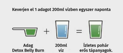 Detox Belly Burn: Keverj el 1 evőkanálnyi (5 g) italport egy pohár (200 mL) vízben és idd meg.