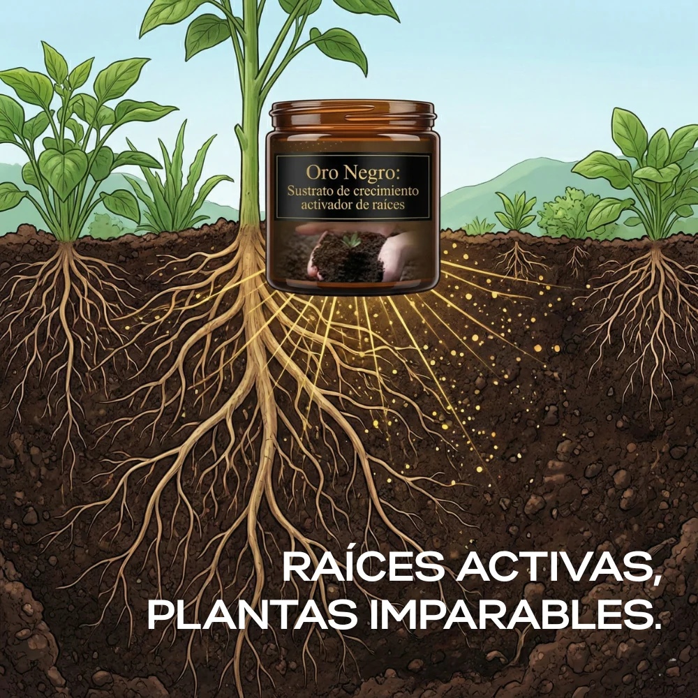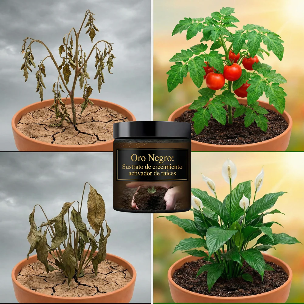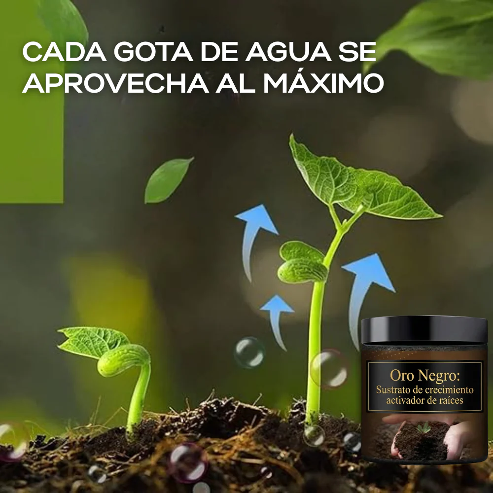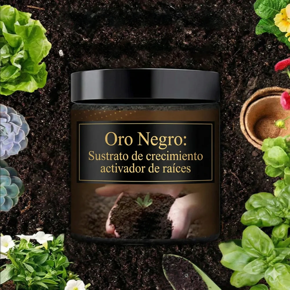 Oro Negro es un sustrato activador de raíces de alta potencia que despierta el suelo desde dentro, fortaleciendo la base de la planta para que crezca más sana, fuerte y resistente durante todo el año.