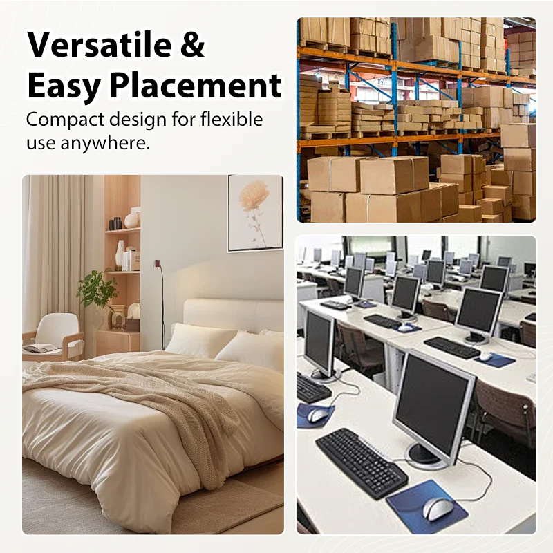 A hatékonyság csökkenhet túlzottan szellőző helyiségekben; nagyobb helyiségekben érdemes több darabot használni.
