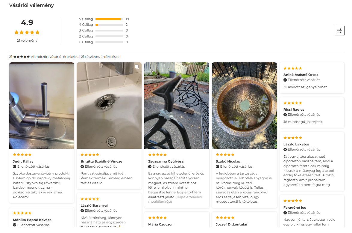 Nincs szükség hegesztésre, gyorsan és egyszerűen javít minden repedést, lyukat, rozsdát, hegesztést és egyéb problémát.