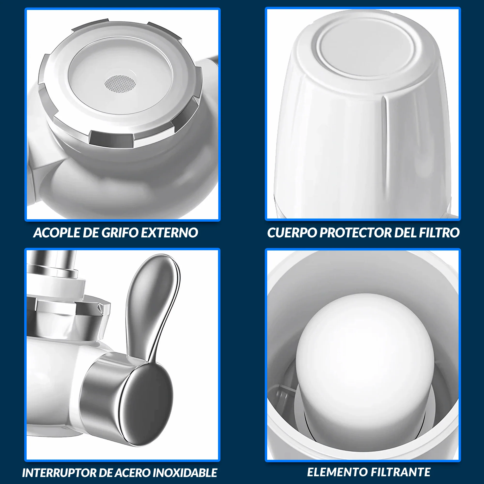 Disfruta al instante de agua pura y deliciosa con nuestro completo filtro de agua.Conectándose fácilmente a tu grifo estándar, mejora la calidad y el sabor del agua del grifo. Además, su instalación es sencilla y no requiere el uso de herramientas adicionales.