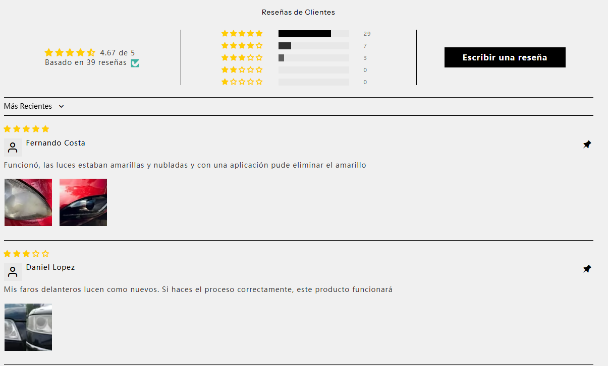 96% Notaron que su coche luce más brillante y con apariencia renovada tras la primera aplicación.