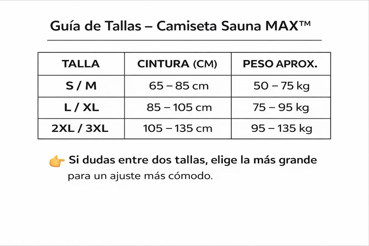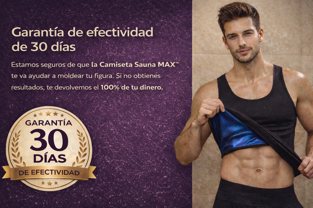 La Camiseta Sauna MAX™ aumenta la sudoración, moldea el abdomen y mejora la apariencia corporal desde el primer uso. Es cómoda, elástica, transpirable y discreta bajo la ropa, ideal para usar a diario o entrenando.